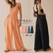 着やせ サロペット 無地 フレアパンツ リゾートワンピース