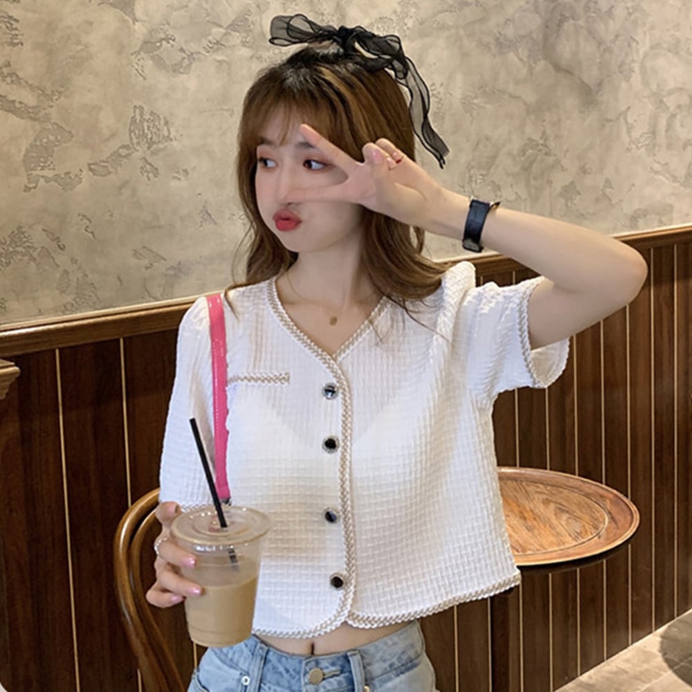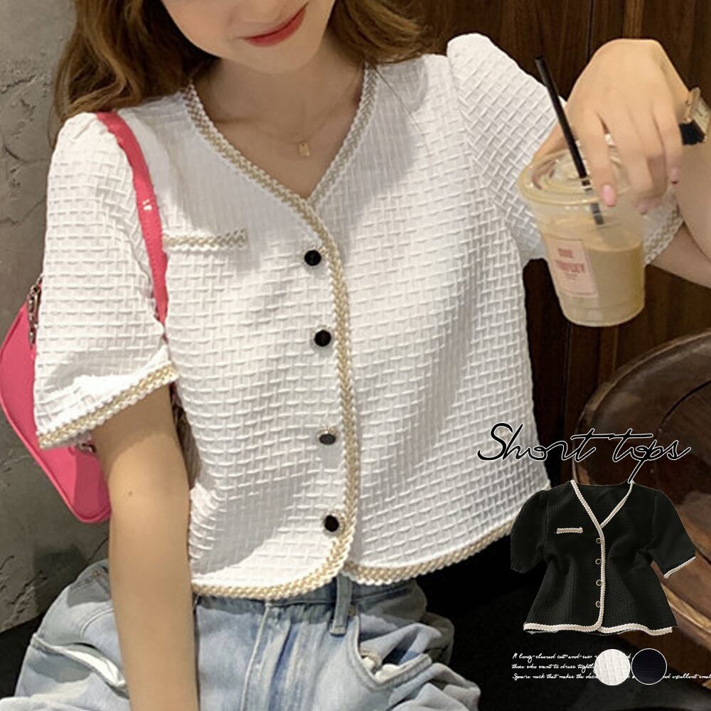【日本倉庫即納】 ツイード風半袖ジャケットレディース韓国風