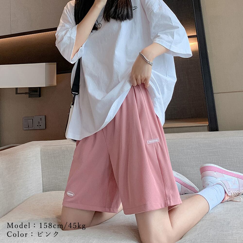 レディース ワイドパンツ ハイウエスト 半ズボン ウエストゴム 運動着 ボトムス 五分丈 接触 冷感 パンツ 夏