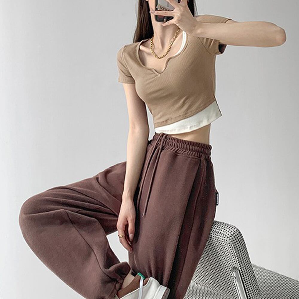 【日本倉庫即納】 ショート丈トップス へそ出し Tシャツ