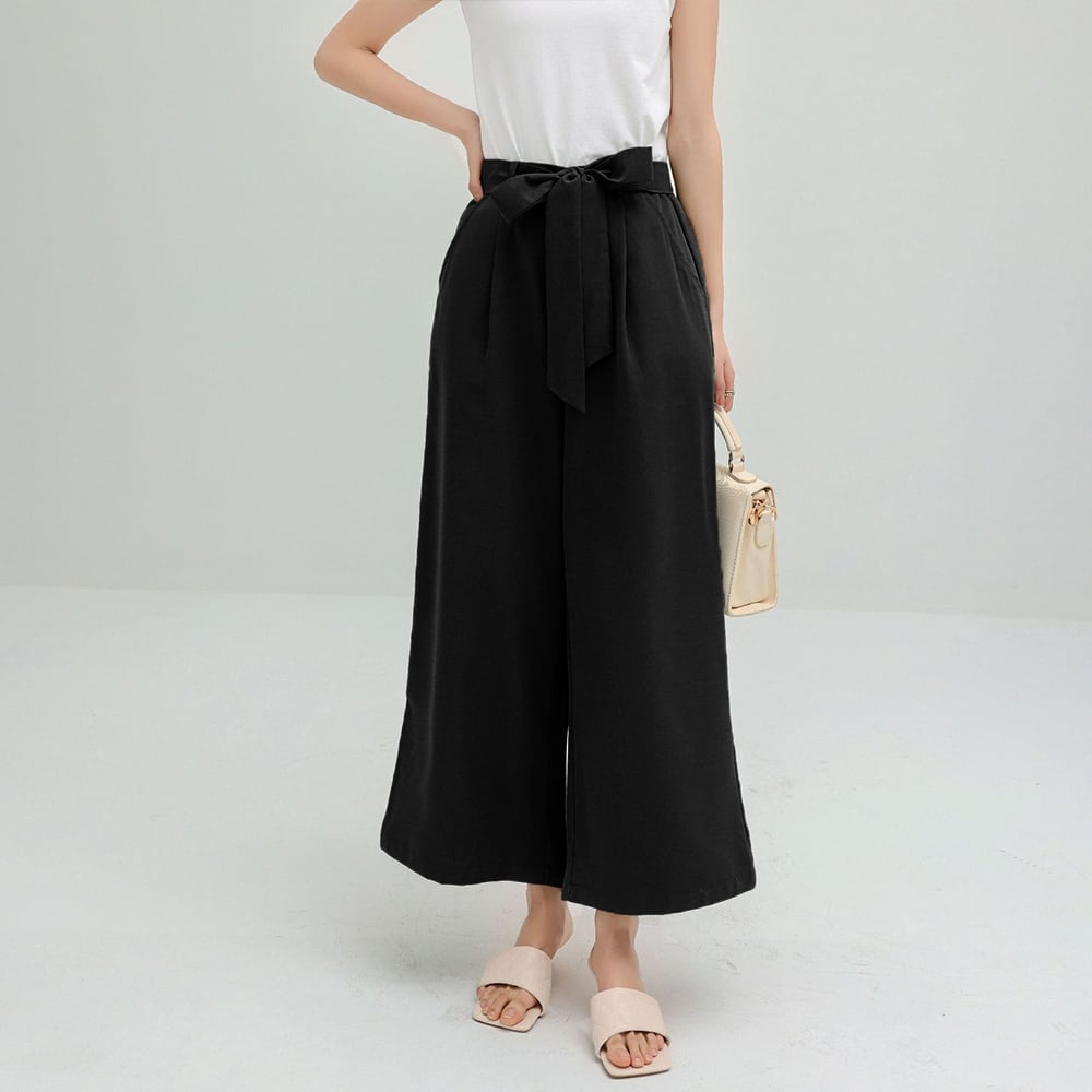 ゆるっとしたシルエットでキレイめにはけるクロップド丈ワイドパンツ