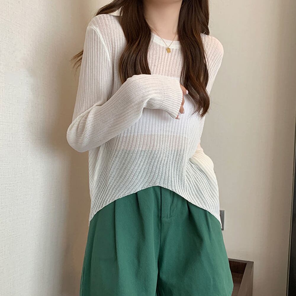 透け感 カットソー 長袖 涼しいトップ 冷房対策 ニット