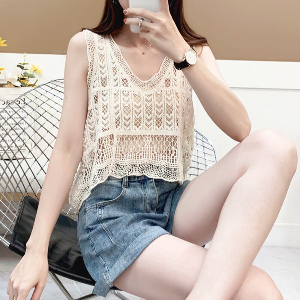 【日本倉庫即納】 タンクトップ Vネック 透かし編み 春夏