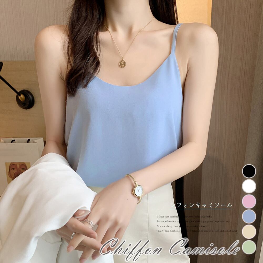 【日本倉庫即納】 シフォン キャミソール Uネック