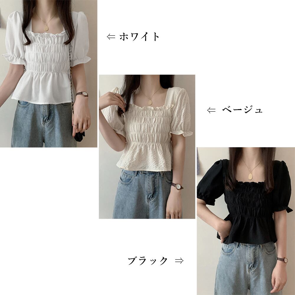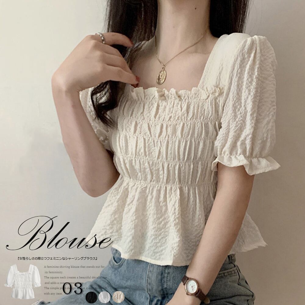 【日本倉庫即納】 スクエアネック ブラウス シャーリング