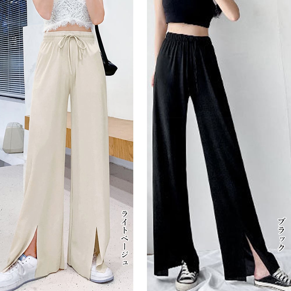 【日本倉庫即納】 イージーワイドパンツ フロントスリット