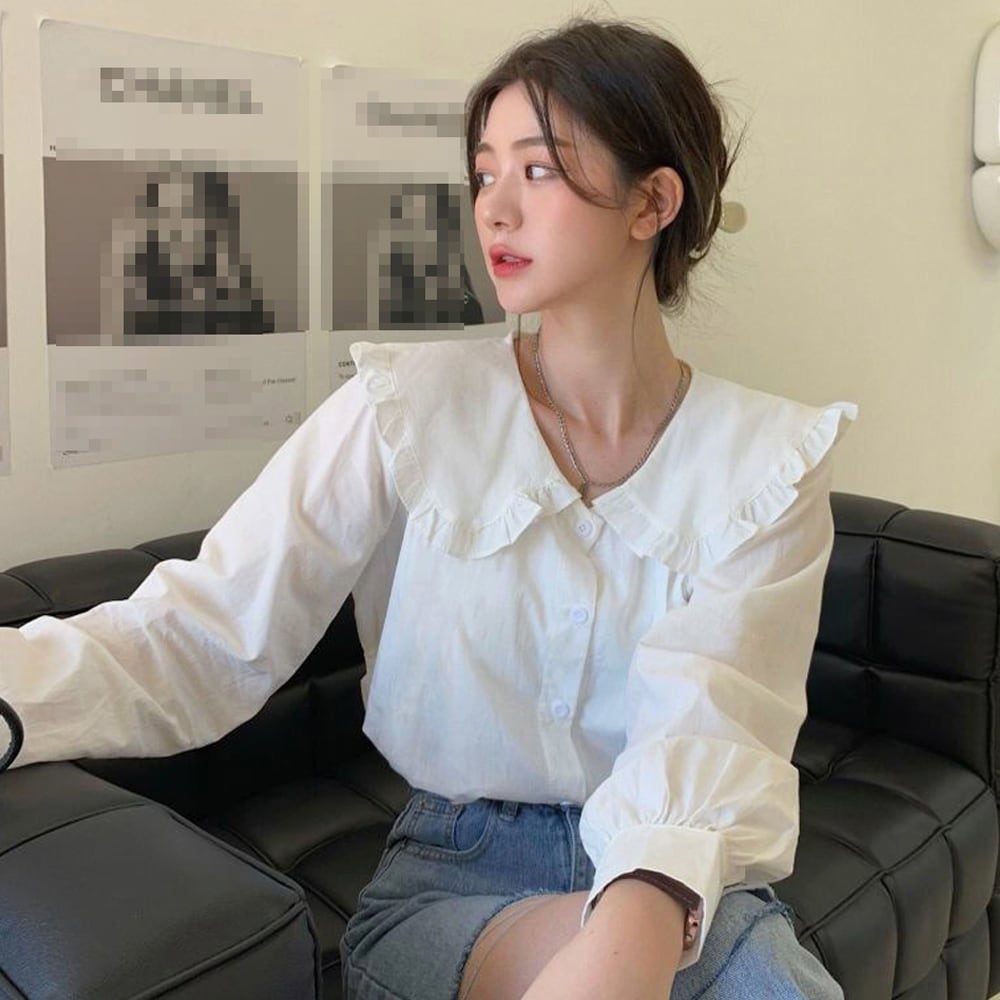 レディース セーラーカラー カジュアル 体型カバー 可愛い シャツブラウス ステートメントカラー