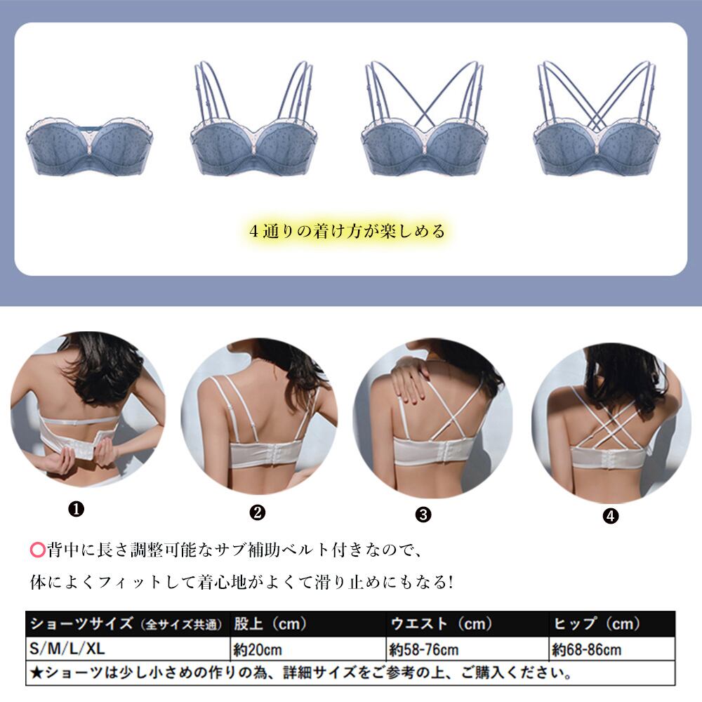 ストラップを外してベアトップに即変身、しかも背中に長さ調整可能なサブ補助ベルト付きなので、体によくフィットして着心地がよくて滑り止めにもなるから、オフショルトップスやワンピースの下着として着ても安心です。