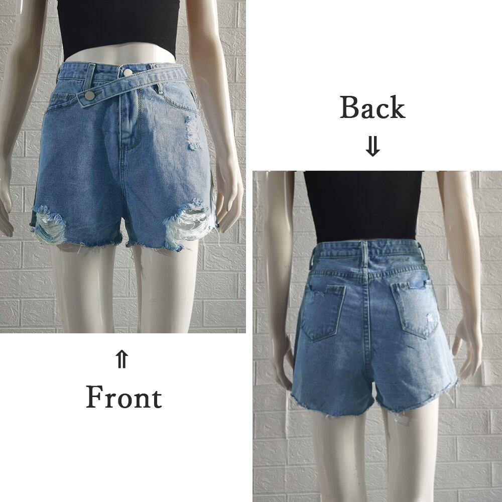 ダメージジーンズ ハイウエスト ホットパンツ カットオフ ボトムス 無地 ワイドパンツ ヴィンテージ デニム 短パン