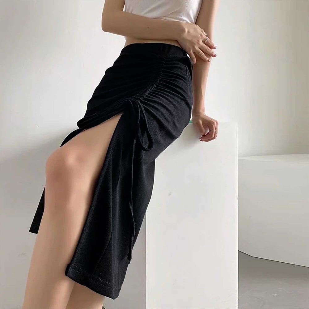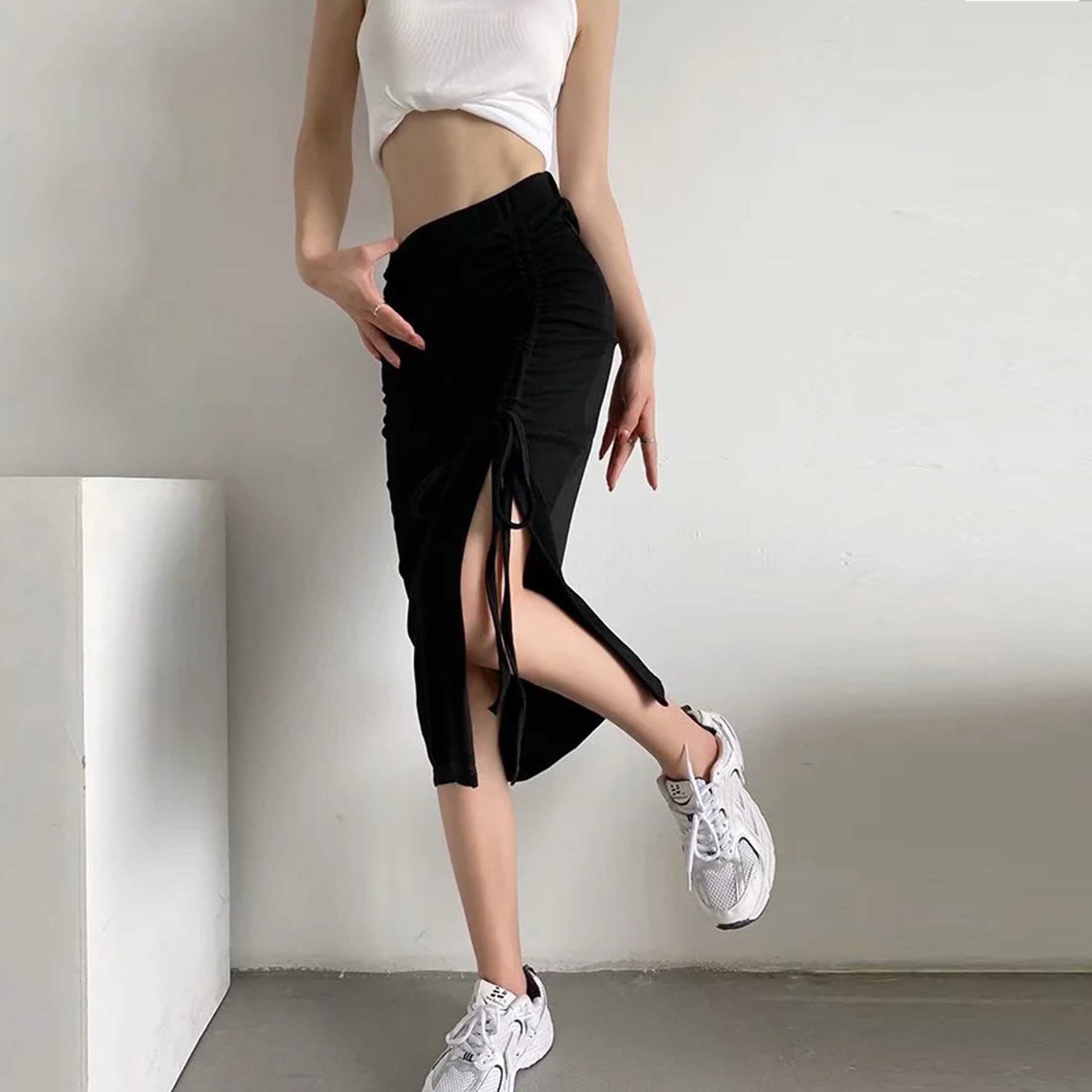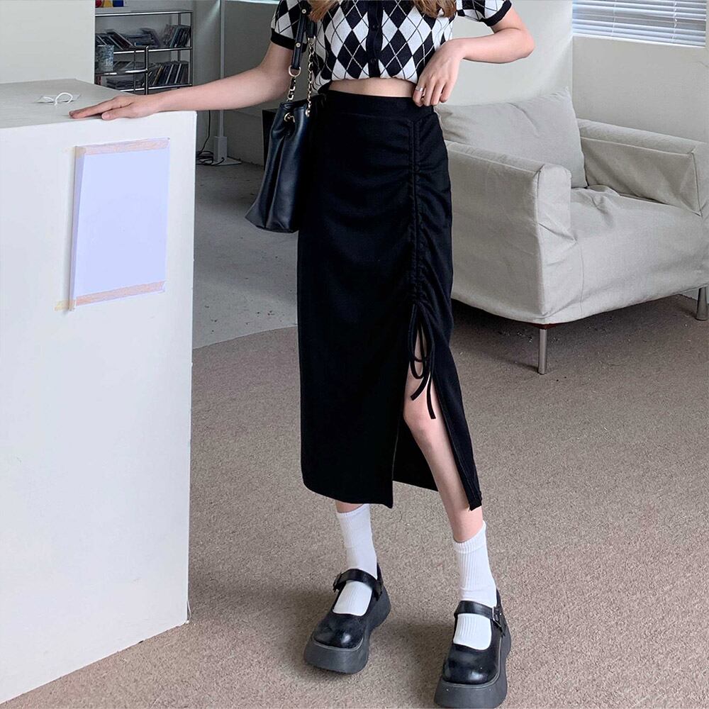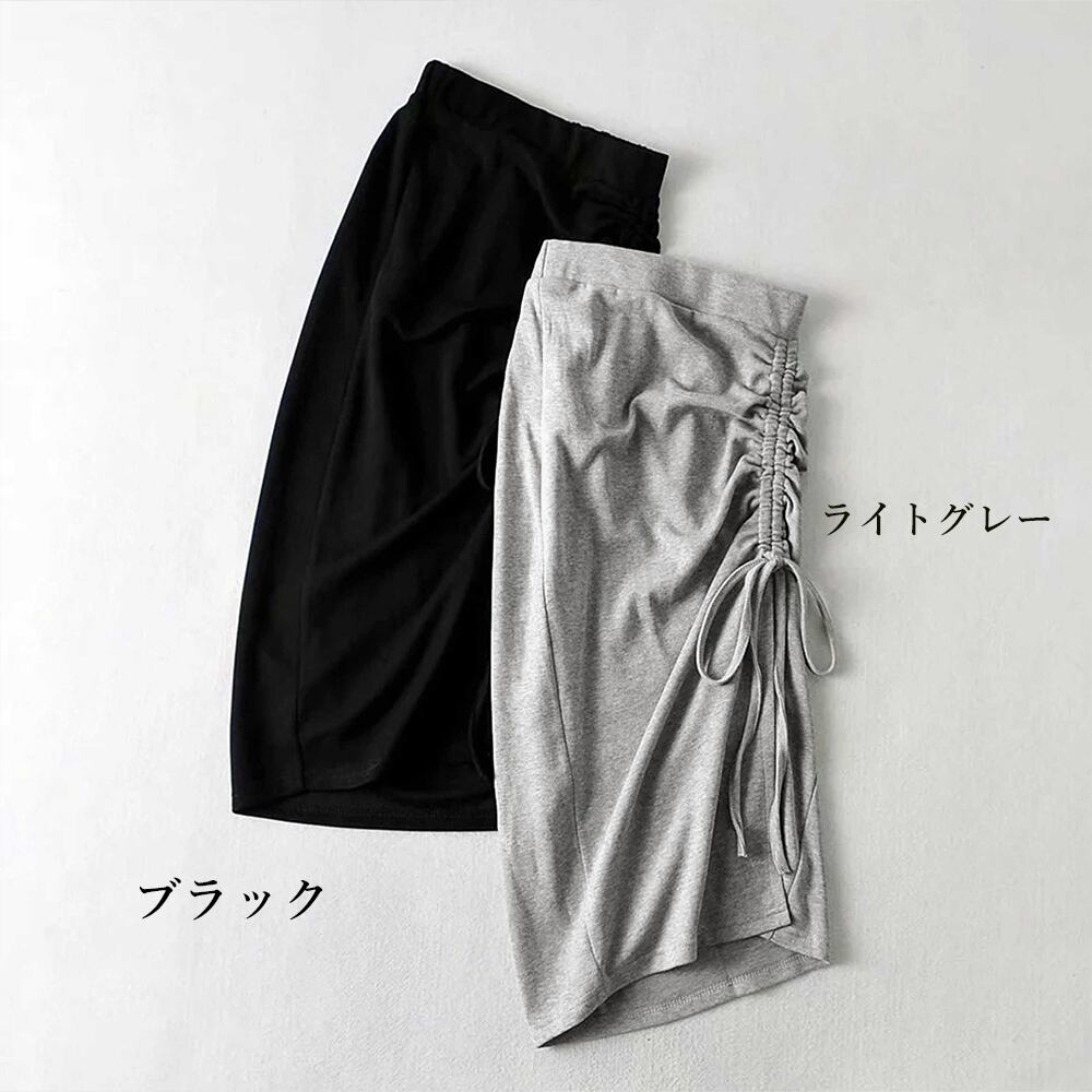 スカート黒ギャザー ボトムススプリング フェミニン通勤脚長