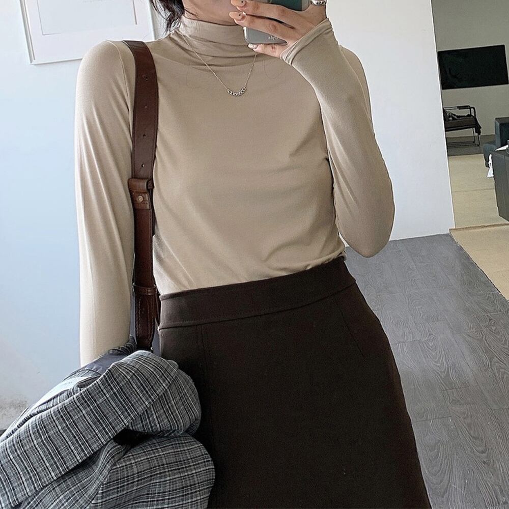 長袖 トップス 柔らか 重ね着 プチハイネック ベーシック 肌触りいい おしゃれ ファッション 春