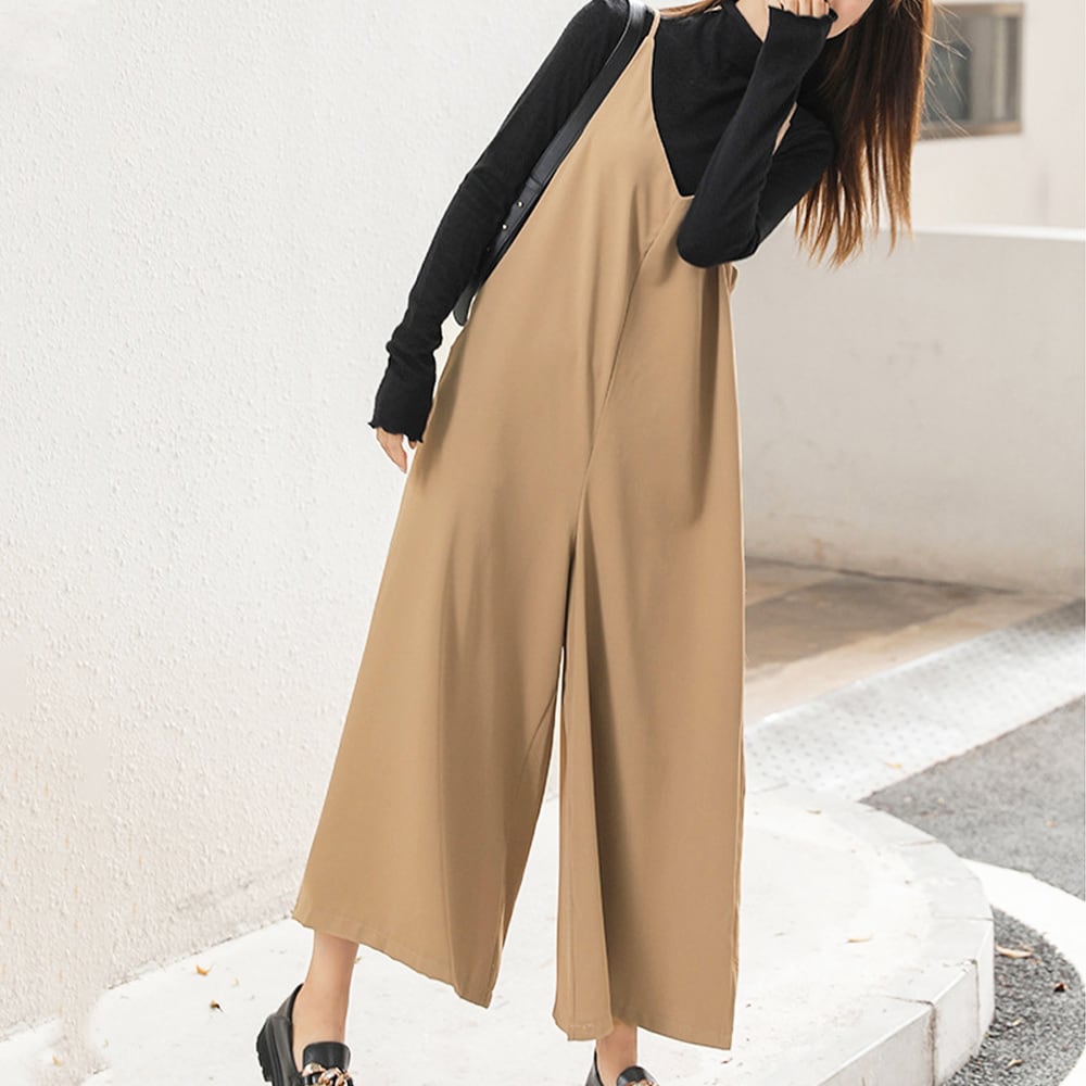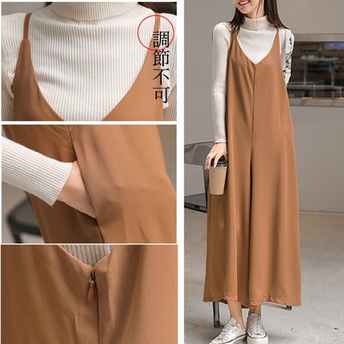ゆったり キャミソールパンツ 重ね着 韓国ファッション おしゃれ ワイドパンツ 体型カバー ガウチョパンツ ポケット
