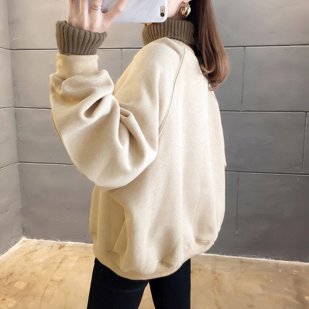 ゆったり スウェット オルチャン タートルネックトップス レイヤード風 ハイネック トレーナー 着やせ ボリューム袖