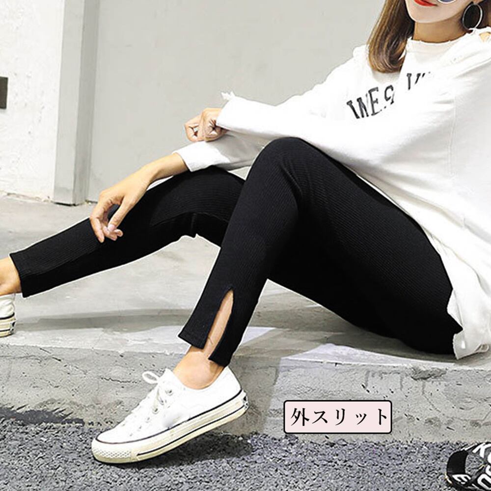 【日本倉庫即納】 レギンス サイドスリット 韓国 ボトムス