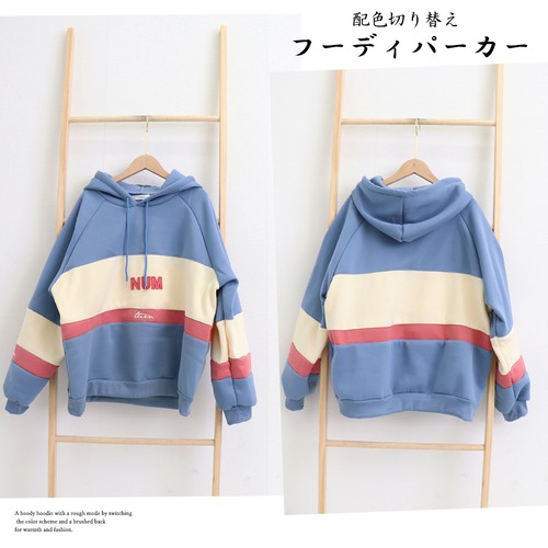 配色切り替えでラフモードな装い、裏起毛仕様で暖かさもお洒落さも兼ね揃えたフーディパーカー