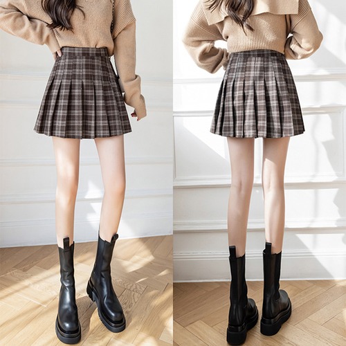 【日本倉庫即納】 韓国風チェック柄プリーツミニスカート