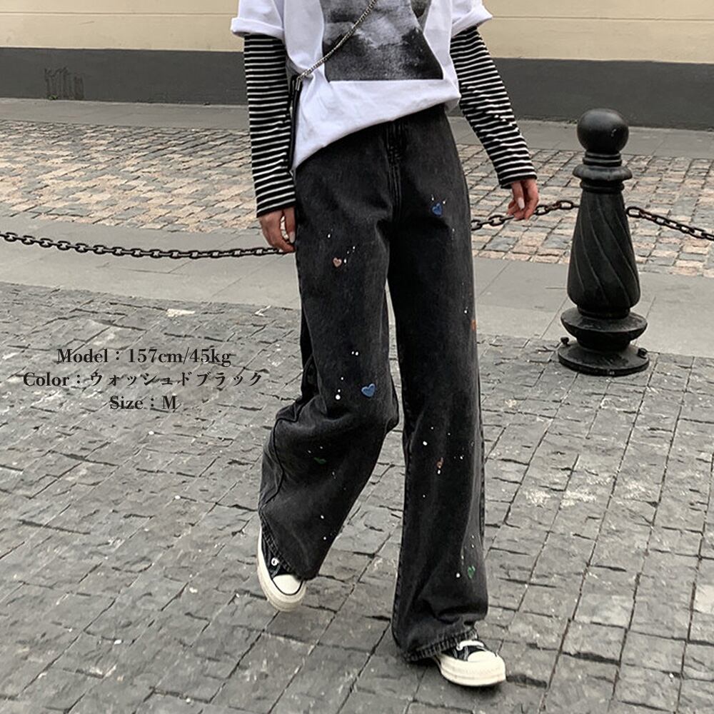 スプラッシュペインティングでかわいいデザインのデニムパンツです。