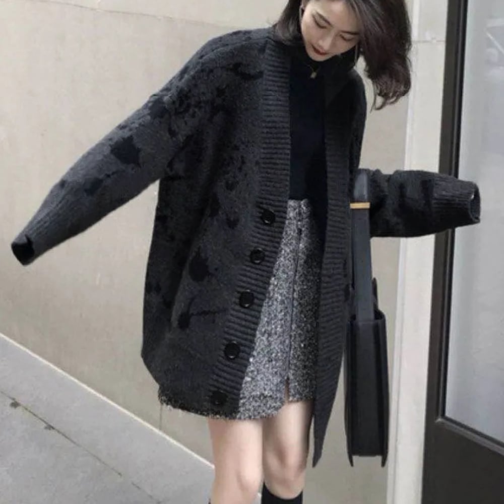 韓国風 vネックカーデ 長袖 中厚手 ドロップショルダー ミドルカーディガン 羽織もの カーディガン きれいめ