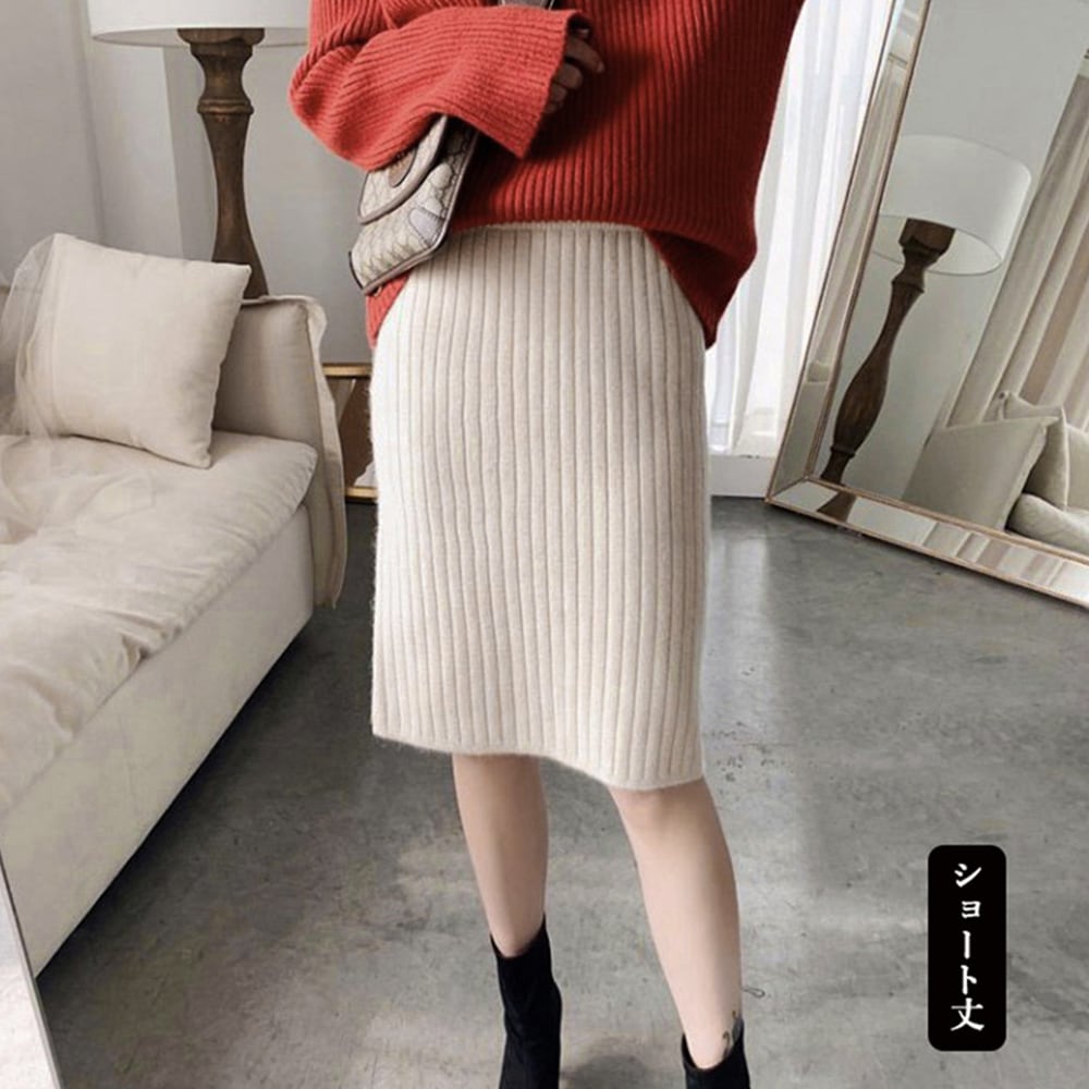 無地ニットスカート ストレッチスカート 韓国ファッション