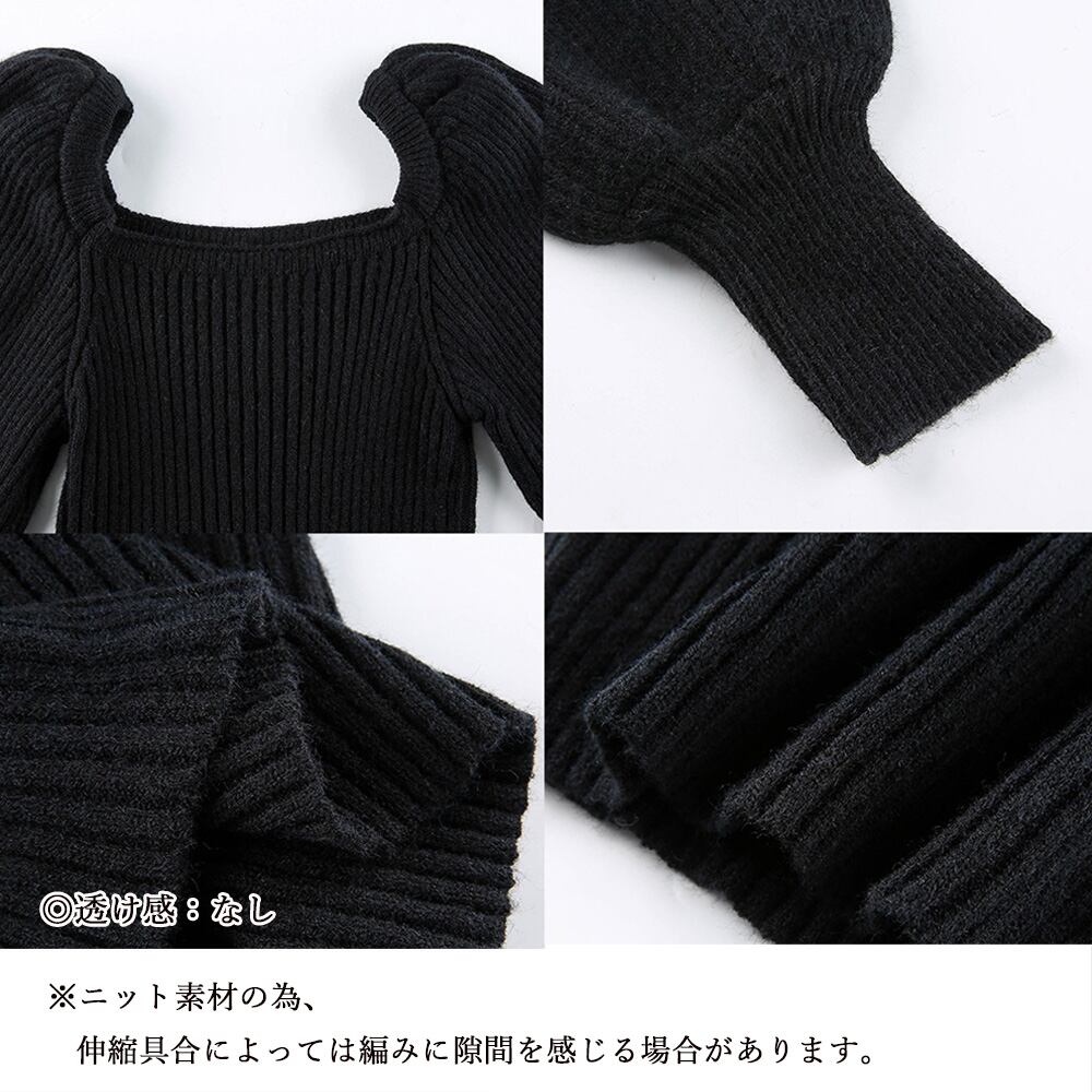 前後スクエアネックデザインでデコルテ&バックスタイルを美しく魅せ、フェミニンさを演出するパフスリーブニットトップス