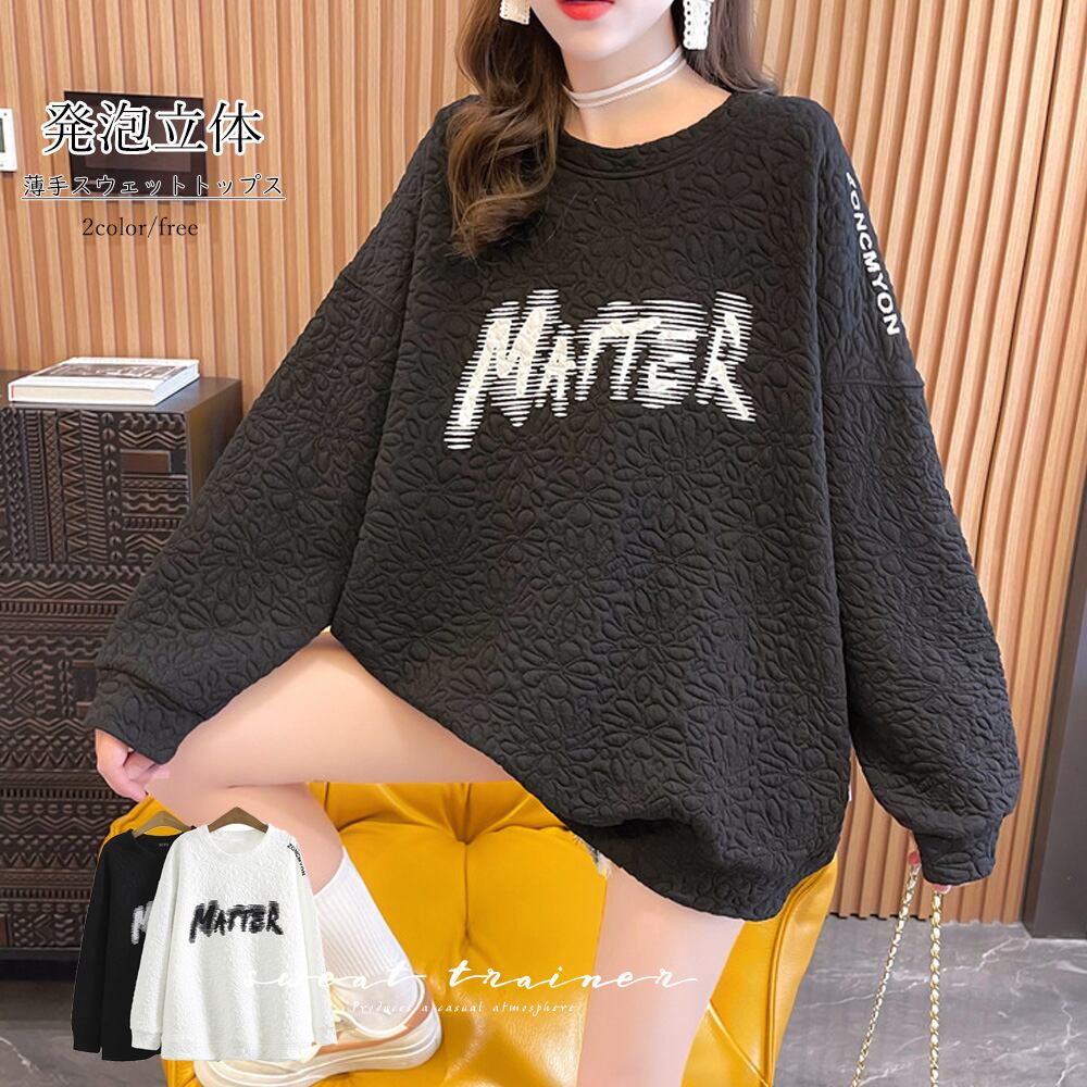 レディース 可愛い ロゴトレーナー 立体 ゆったり チュニックロン T 韓国風 春秋冬長袖 プルオーバー おしゃれ 着やせ