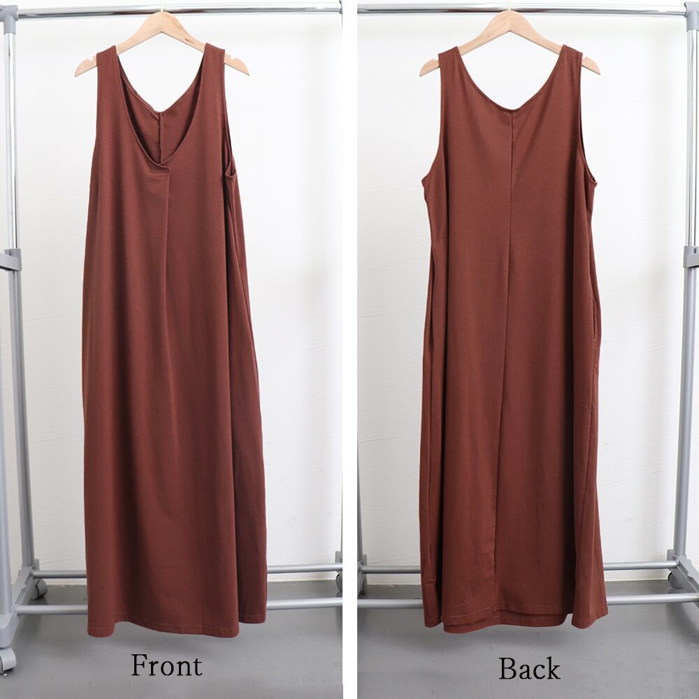 トップス問わず合わせるだけでレイヤードコーデを気軽にロングシーズン楽しめる袖なしワンピース