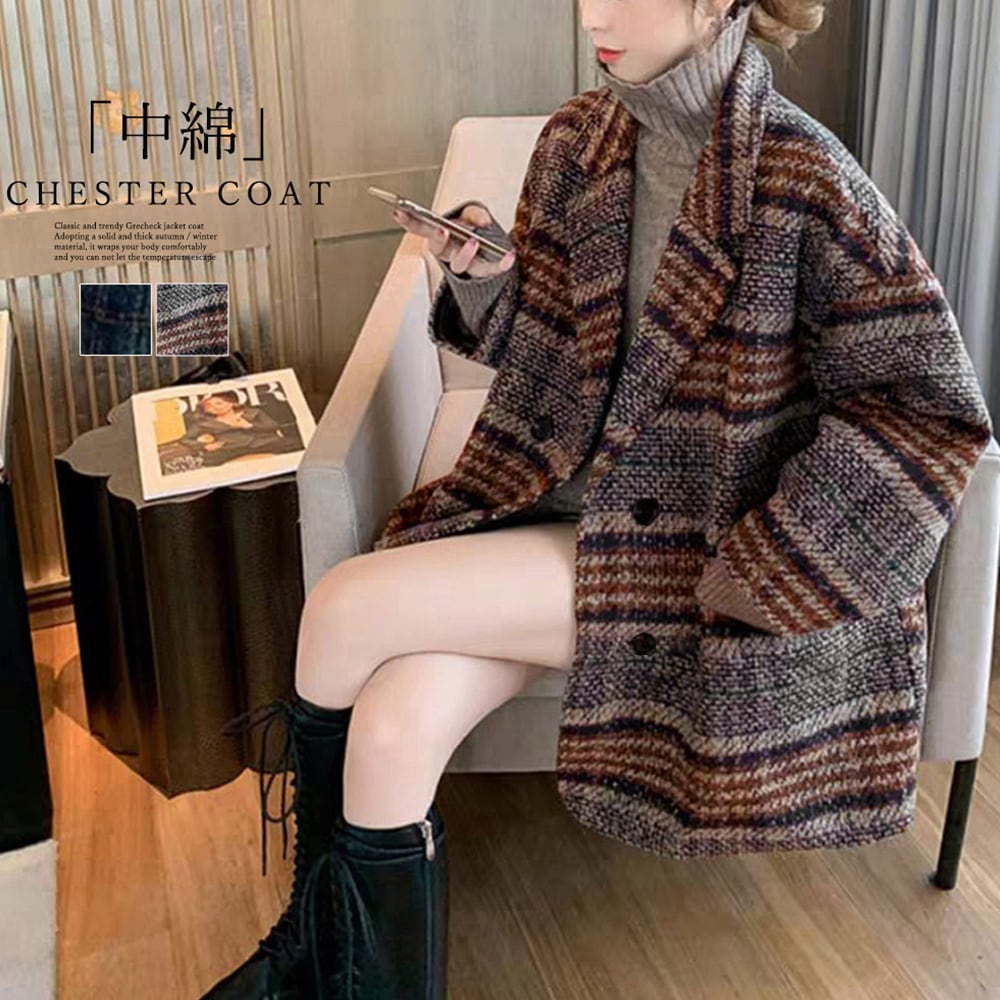 【日本倉庫即納】 チェック柄 チェスターコート レディース
