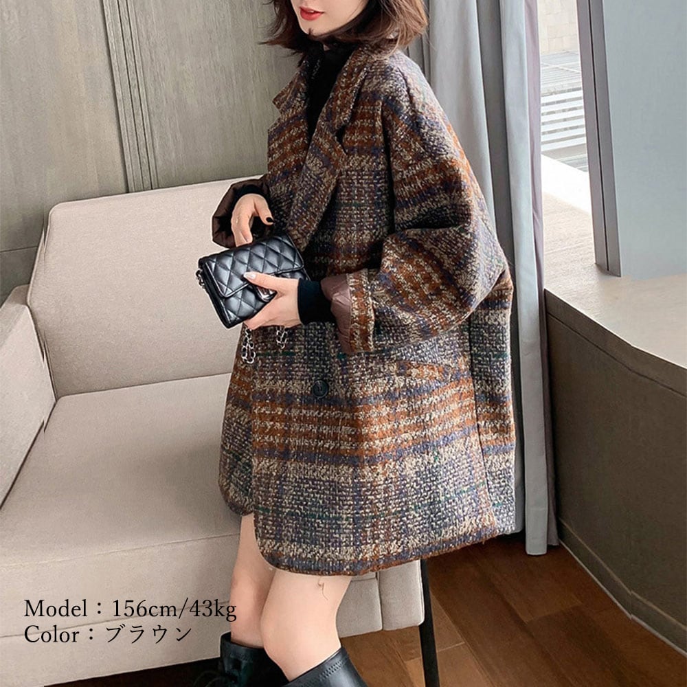 チェック柄アウター カジュアルゆったり 羽織り女性 着やせ
