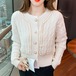 ケーブル編み アウター ショート丈 レディース あったか セーター 可愛い 長袖 ボタン オシャレ ふんわり