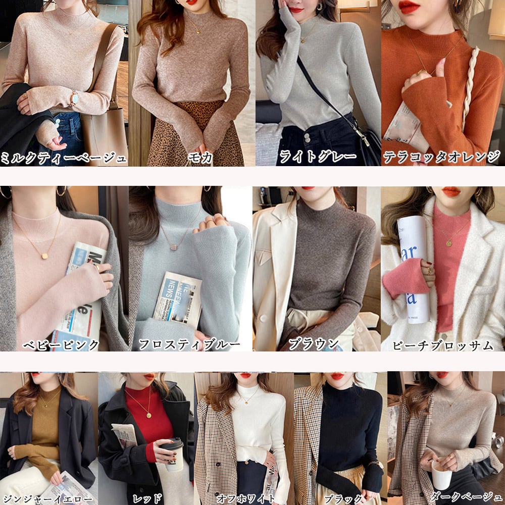 プチハイネック 長袖 薄手セーター カシミヤ風 韓国ファッション 無地 ニットインナー ハーフネック ニットソー