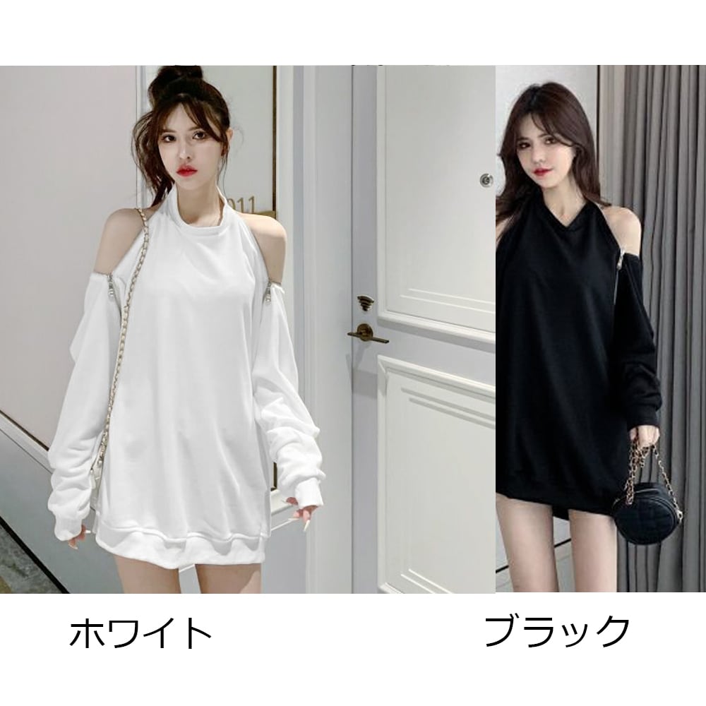 レディース トレンドカジュアル トレーナー ゆったり 体型カバー 肌見せ 無地 肩開き カットソー ベーシック