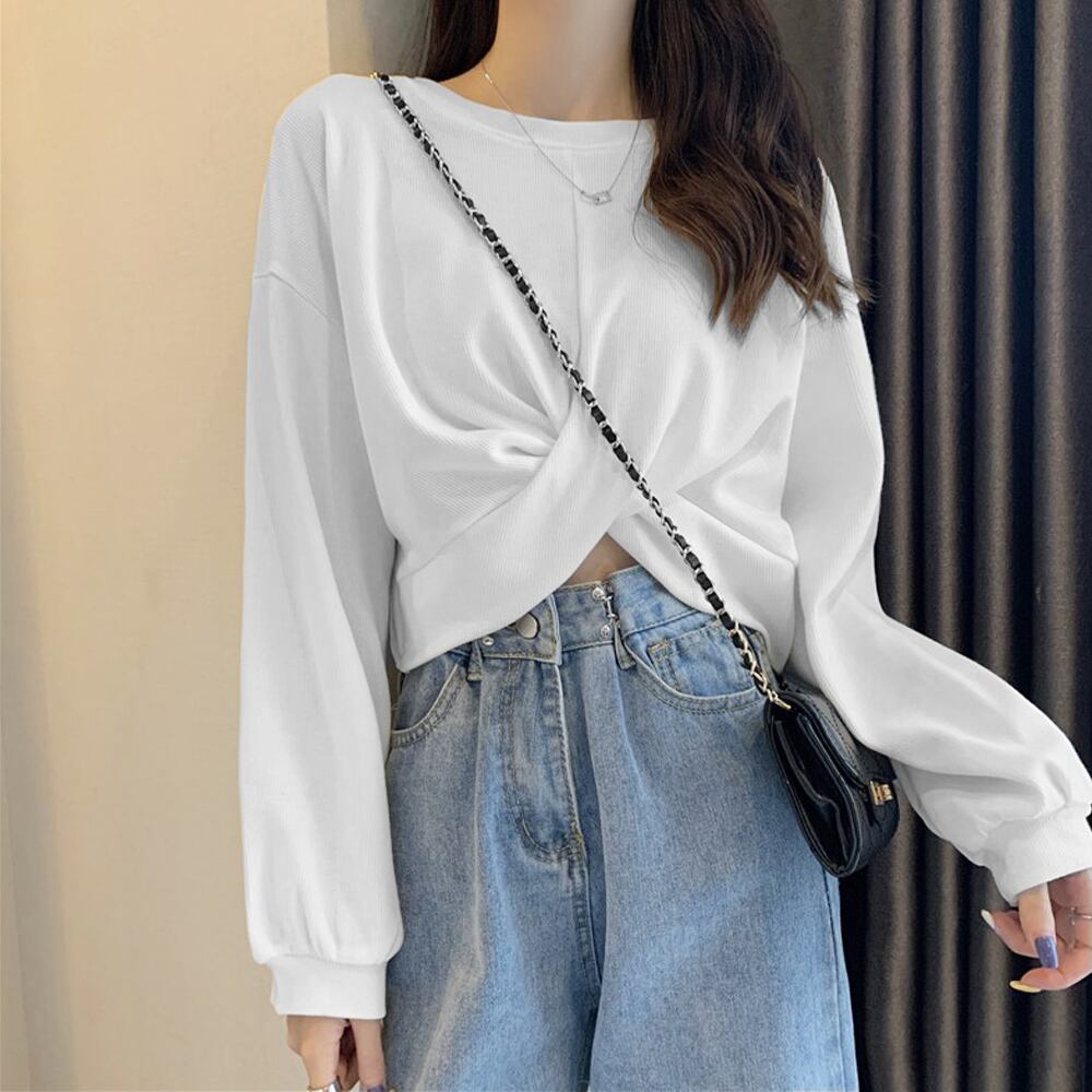 レディース 長袖 カジュアル フロントクロス ショートTシャツ 春秋冬 無地 セクシー ヒップホップ おしゃれ