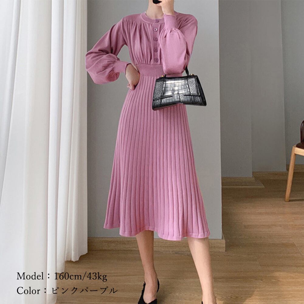 【日本倉庫即納】 リブニットワンピース 韓国風レディース
