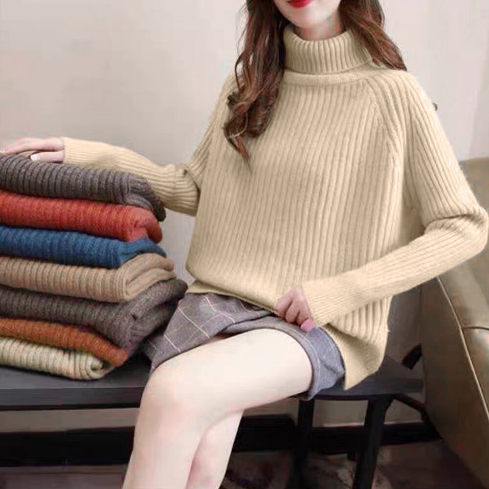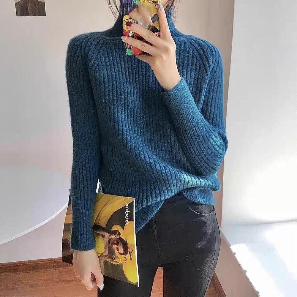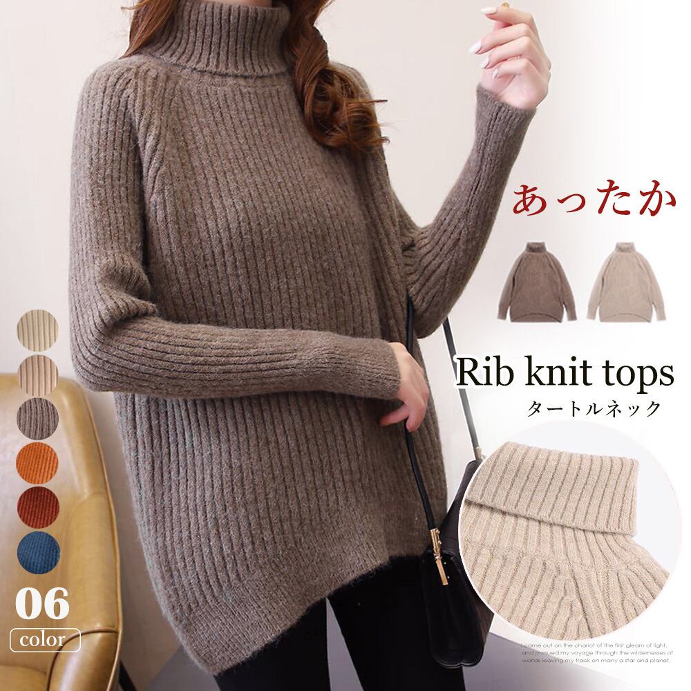 【日本倉庫即納】 リブニットトップス タートルネック 韓国