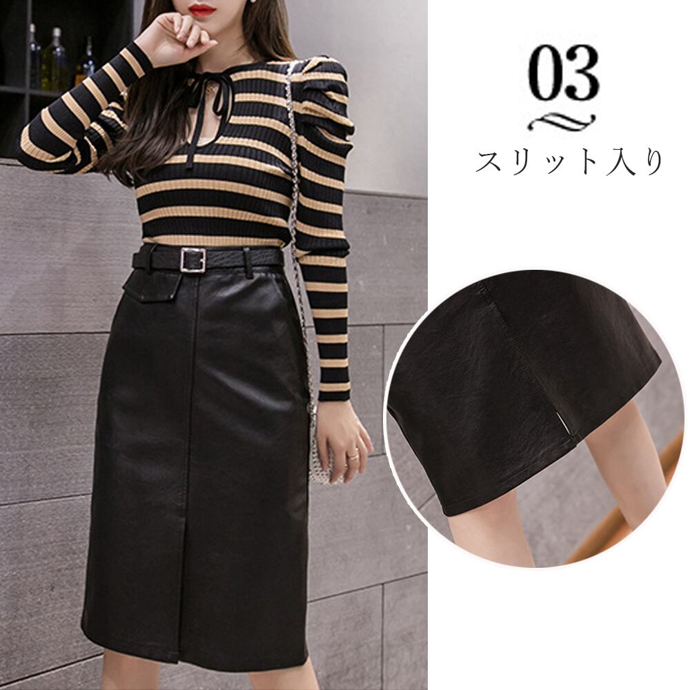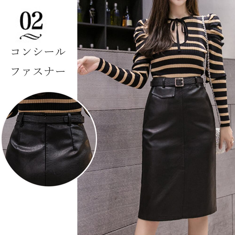 【日本倉庫即納】 PUレザースカート ベルト付き 着やせ