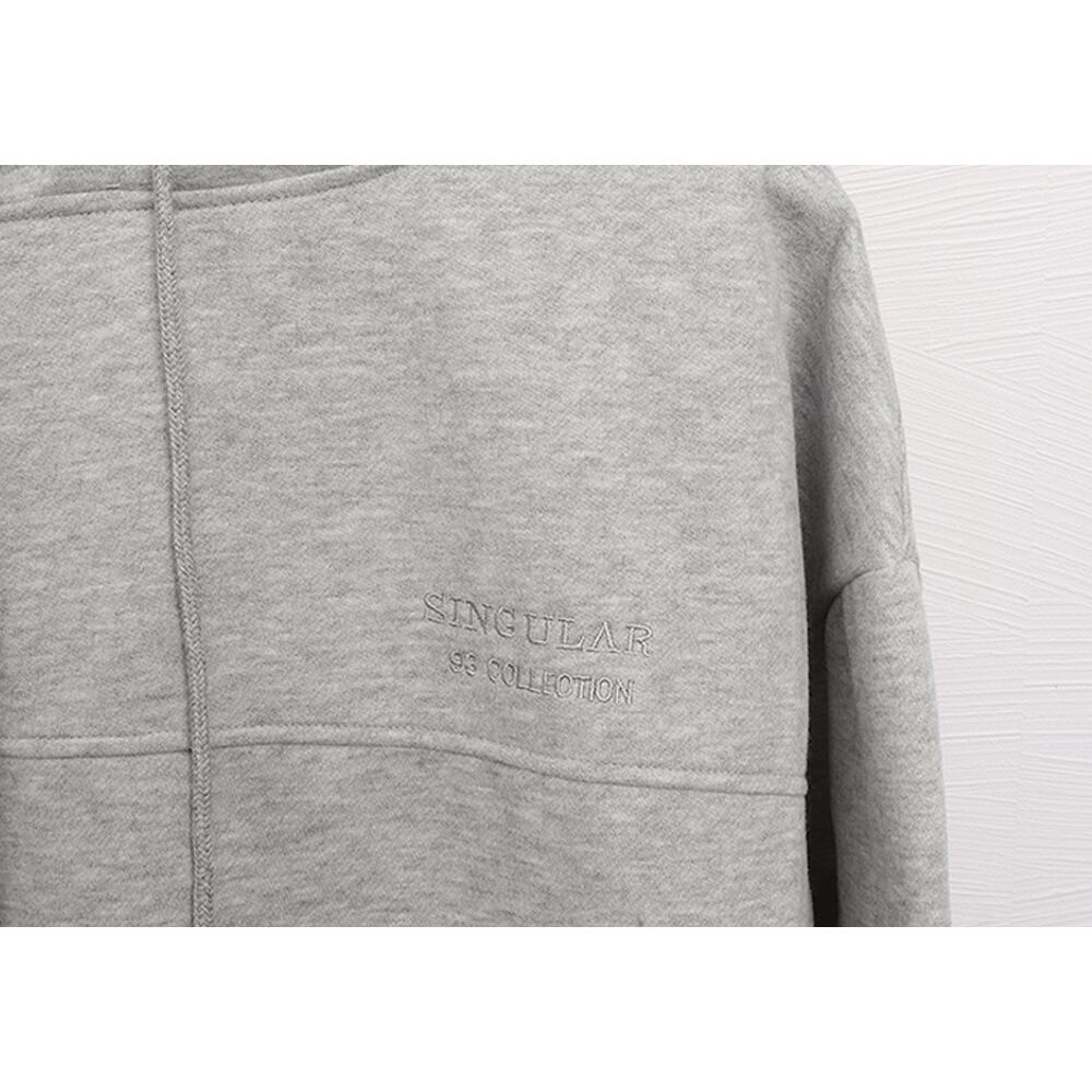 身幅と腕周りにゆとりをもたせた、オーバーサイズのパーカー。