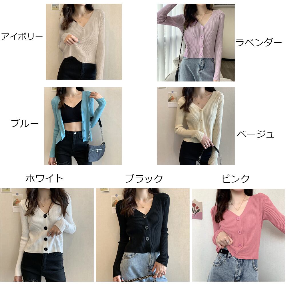 レディース ニットセーター Vネック 無地 長袖 リブ編み 羽織り カジュアル きれいめ ニットアウター