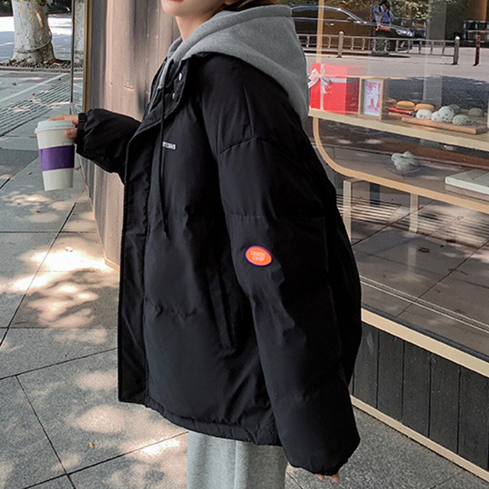 韓国風 フード付き 中綿コート レディース ロゴ 防寒アウター あたたか ジャンパー フェイクダウン ブルゾン カジュアル