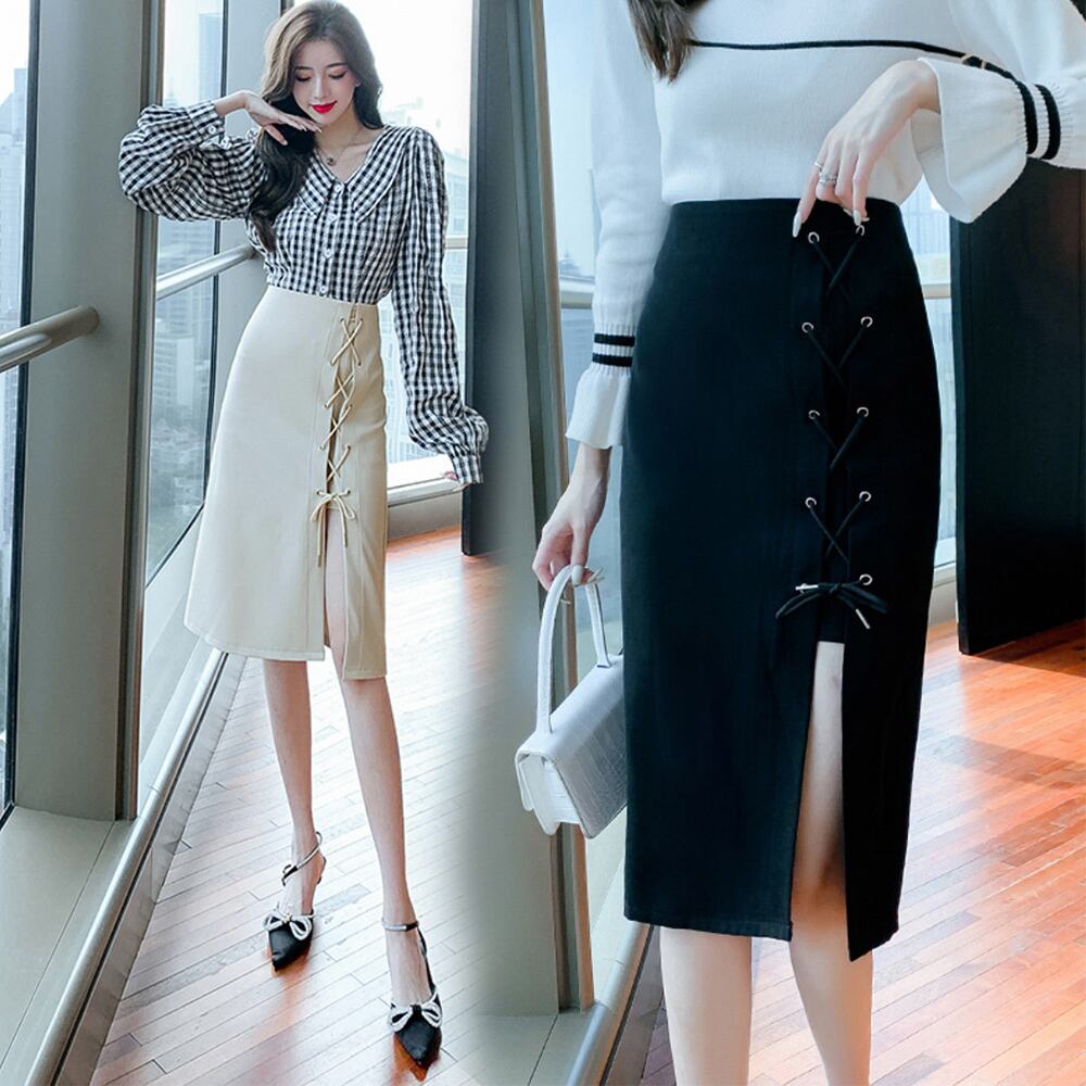 大胆なスリットがセクシーなレースアップデザインのサイドスリットタイトスカート