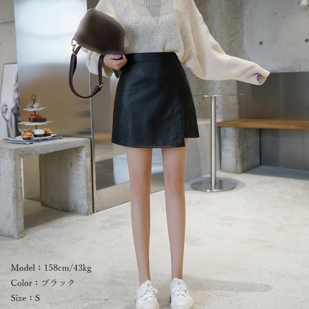 【日本倉庫即納】 アシンメトリー PUレザースカート 韓国
