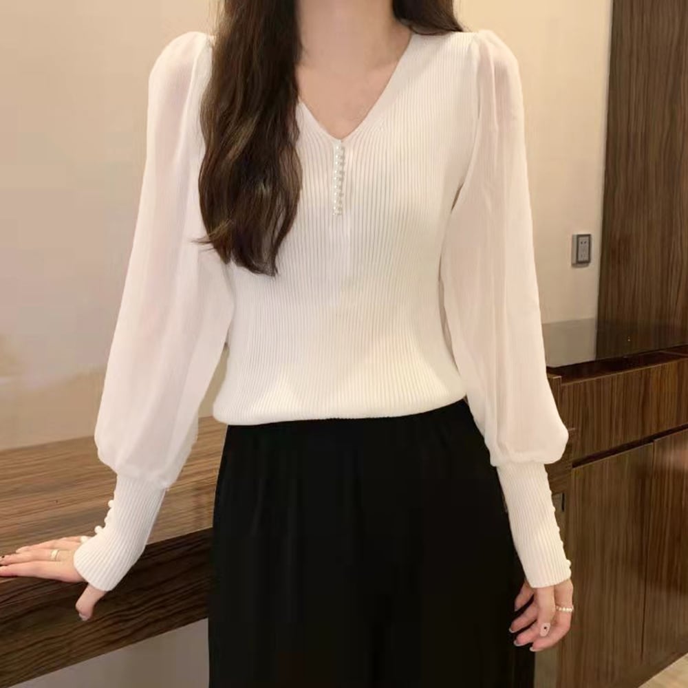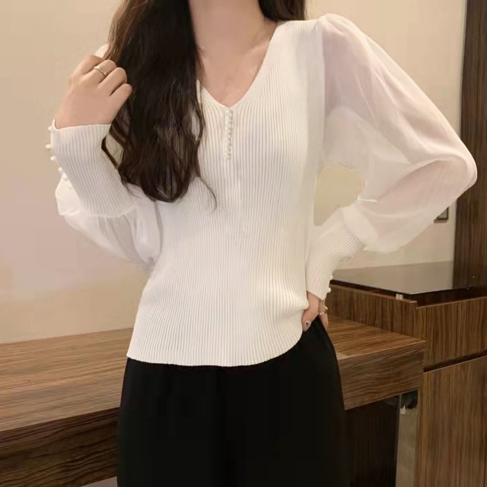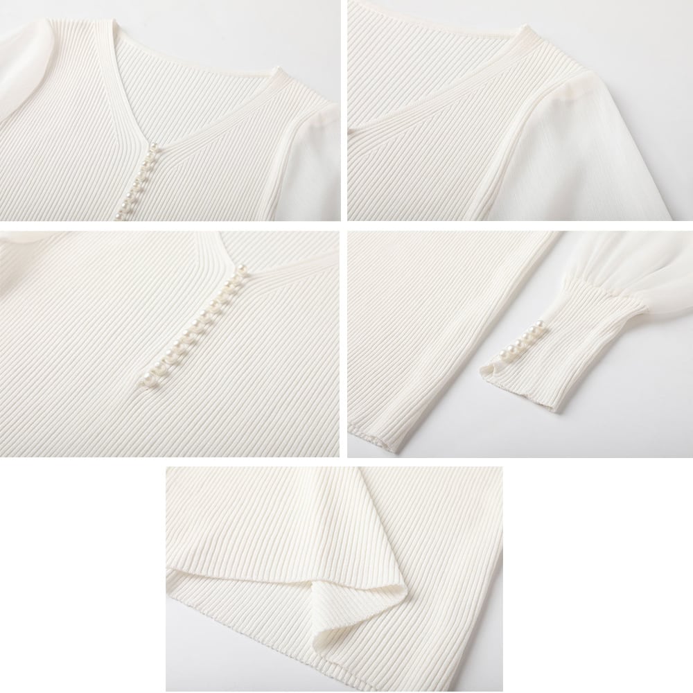 【日本倉庫即納】 ニットトップス レディース シフォン袖