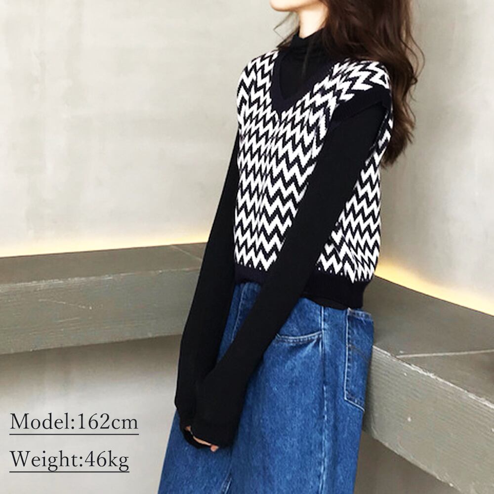 ニットトップス ノースリーブ プルオーバー レイヤード風 オフィス 通学 学院風