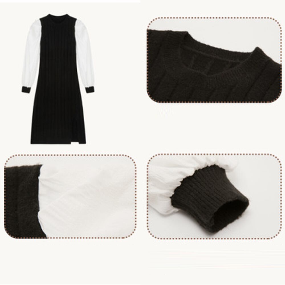 【日本倉庫即納】 ニットワンピース 袖異素材 パフスリーブ