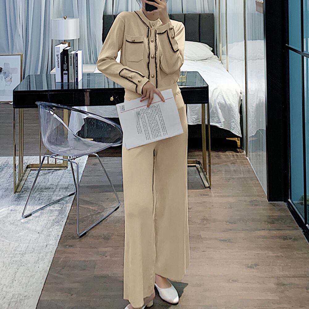 韓国 長袖 セットアップ ニットトップス ニットワイトパンツ 上下セット 大人 アンサンブル キャリアウーマン