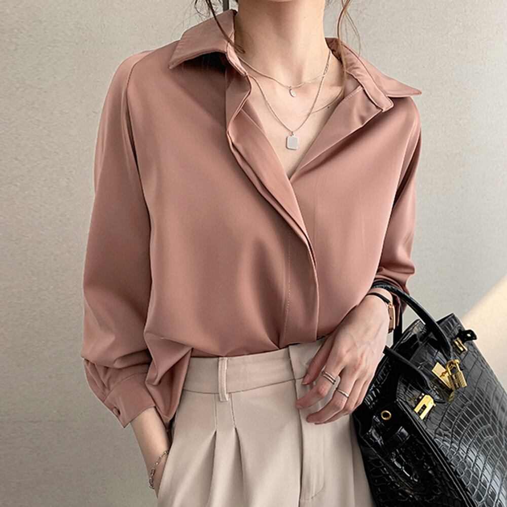 とろみシャツ Vネック 無地 スキッパーブラウス こなれ感 体型カバー トップス お洒落 オフィス 春秋 コーデ30代40代