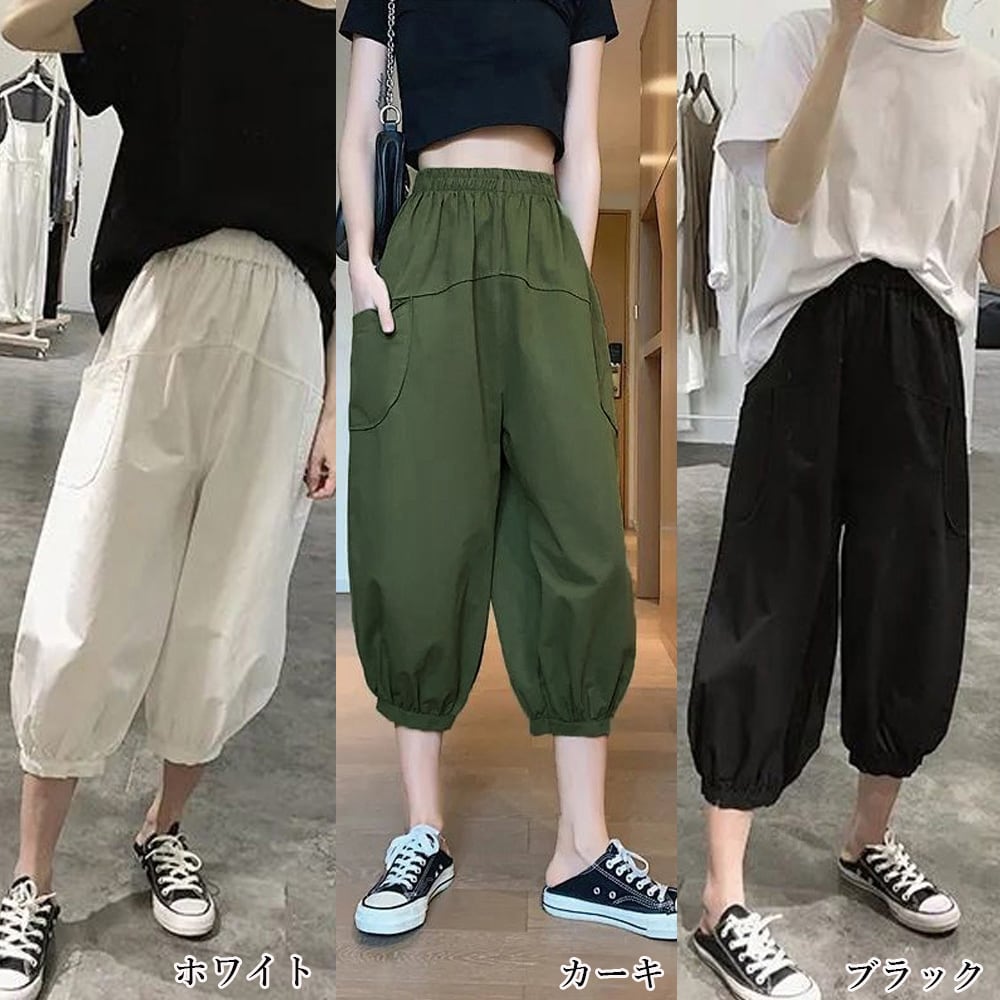 キャロットパンツ 着やせ クロップドパンツ ゆったり ポケット付き 七分丈パンツ カジュアル テーパードパンツ