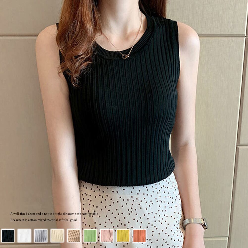 【日本倉庫即納】 リブニット タンクトップ ノースリーブ