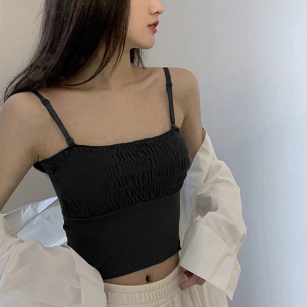 ストラップ付き インナー ストレッチ 韓国ファッション プリーツキャミソール