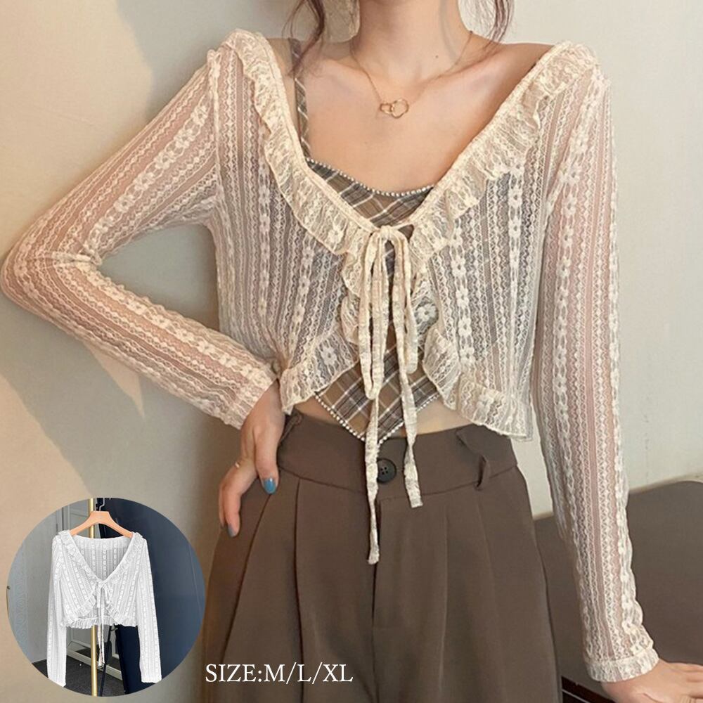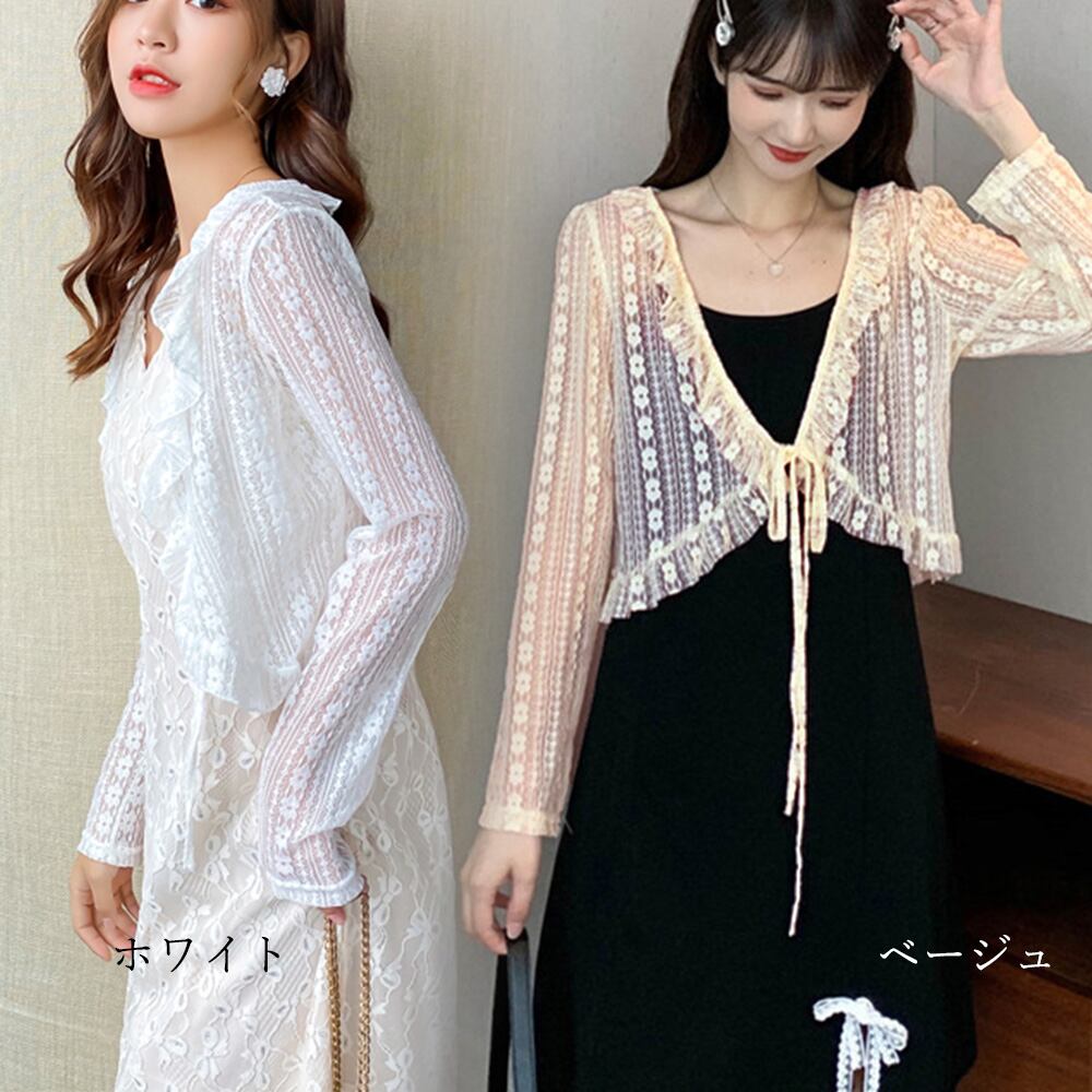 カーディガン 長袖レース シースルー オシャレ 春夏 トップス 可愛い 着心地 通気性良い