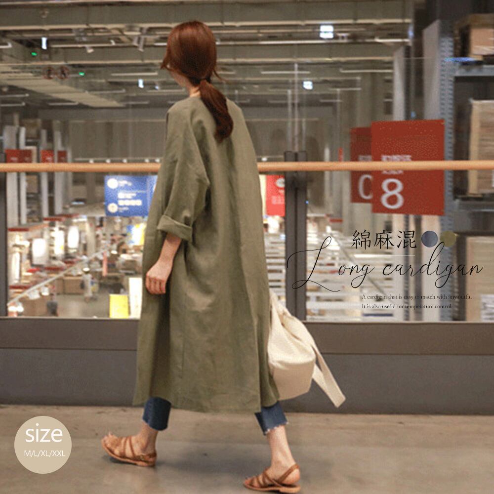 ロングカーディガン レディース 長袖 薄手 ボレロアウター 春夏秋 冷房対策 カジュアル 羽織り コットンリネン ゆったり